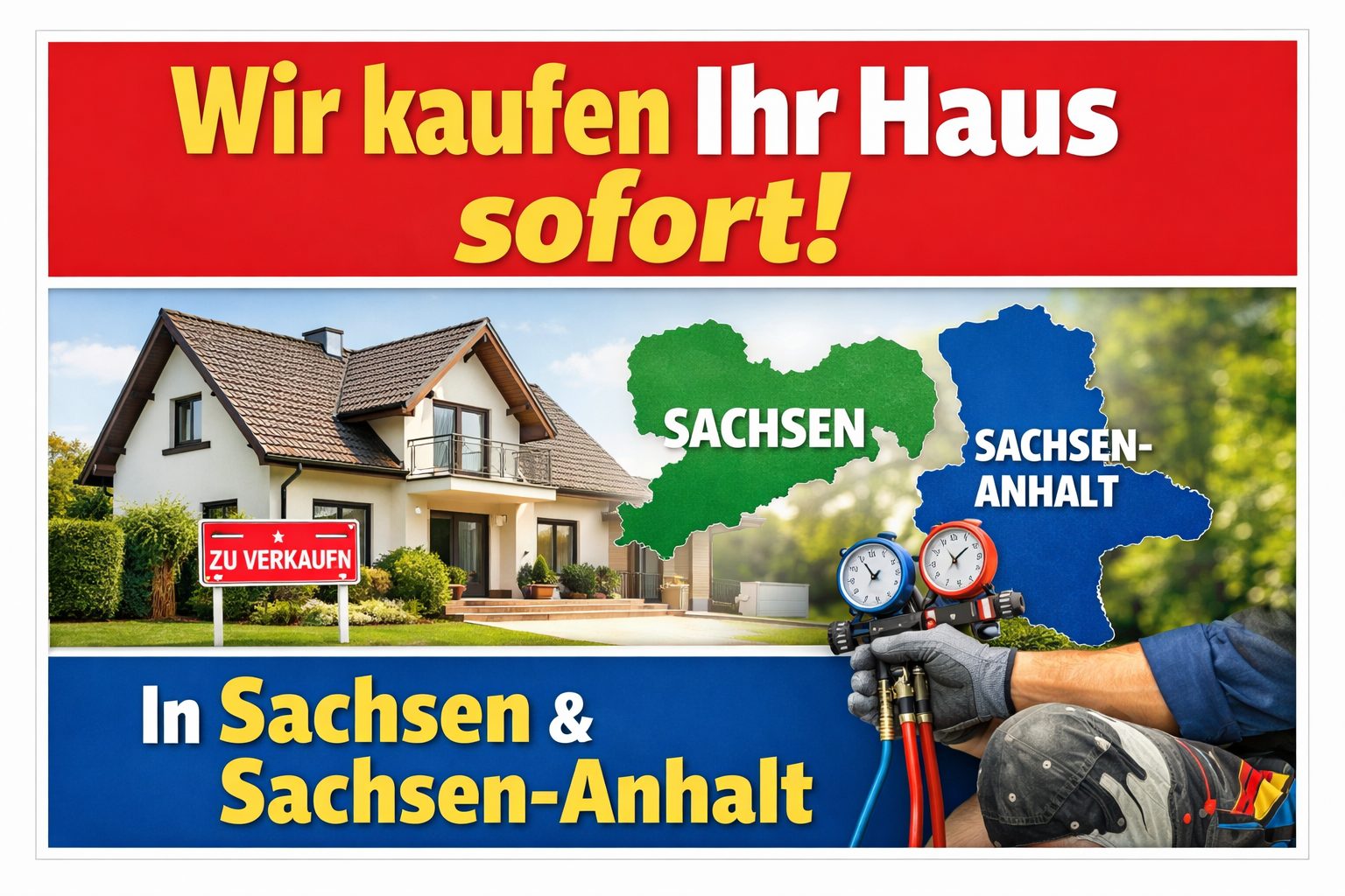 Wir kaufen Häuser und sanieren sie schlüsselfertig im Raum Sachsen-Anhalt und Sachsen. Unsere erfahrenen Handwerker arbeiten eng zusammen, um Ihnen ein perfekt saniertes Zuhause zu bieten.