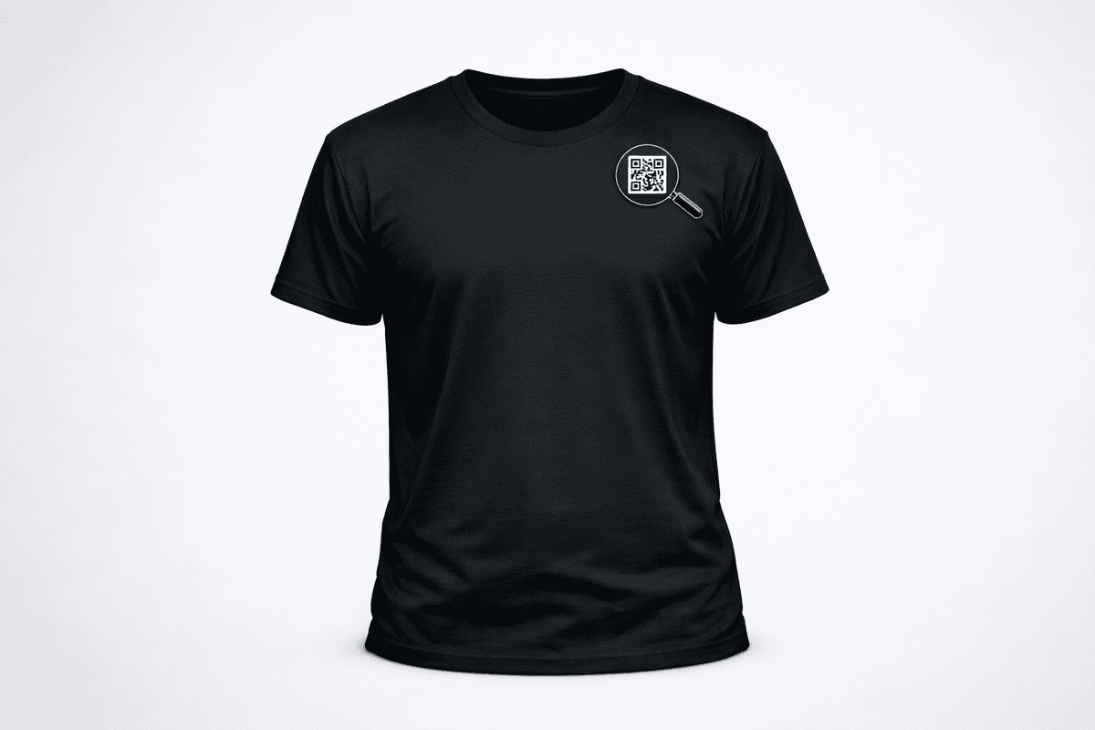Das ständige Schleppen von Papier-Visitenkarten  war aus den 90ern. Heute trägt man seine Kontaktdaten smart und stilvoll: Ein dezentes QR-Code-Logo unten rechts auf dem Shirt führt direkt zur digitalen Visitenkarte. Modern, praktisch und ganz ohne Papierkram.