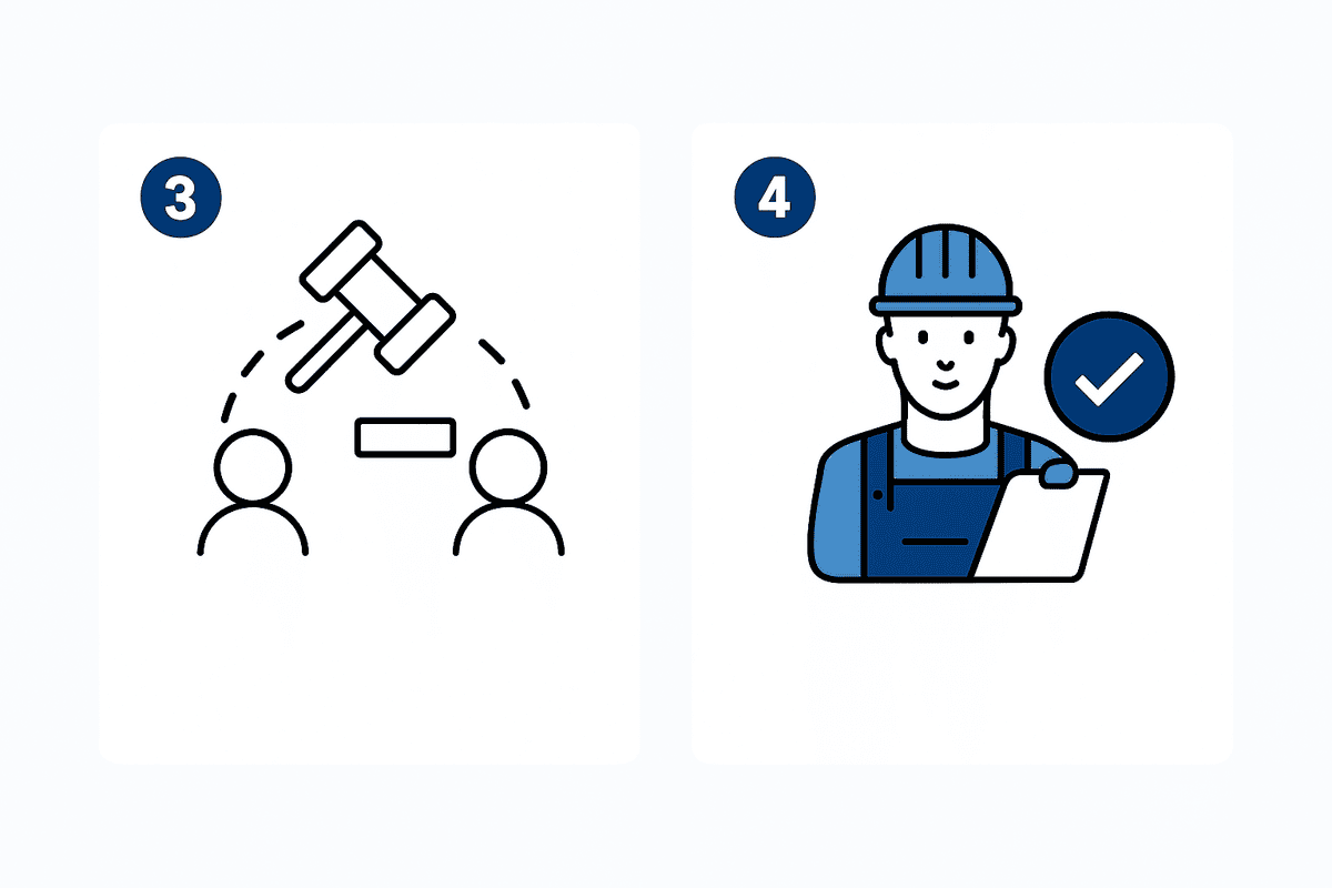 Wenn trotz Aufforderung keine Nachbesserung erfolgt oder der ursprüngliche Handwerker nicht mehr verfügbar ist, kümmern wir uns um eine qualifizierte Ersatzlösung. Wir greifen auf unseren geprüften Handwerkerpool zurück und vermitteln Ihnen einen Fachbetrieb, der die offenen Leistungen übernimmt und fachgerecht zu Ende führt. Dabei achten wir auf Qualität, Verfügbarkeit und die nahtlose Fortsetzung Ihres Projekts – ohne weitere Verzögerungen oder Komplikationen. So stellen wir sicher, dass Ihr Bauvorhaben trotz Rückschlägen erfolgreich abgeschlossen wird.