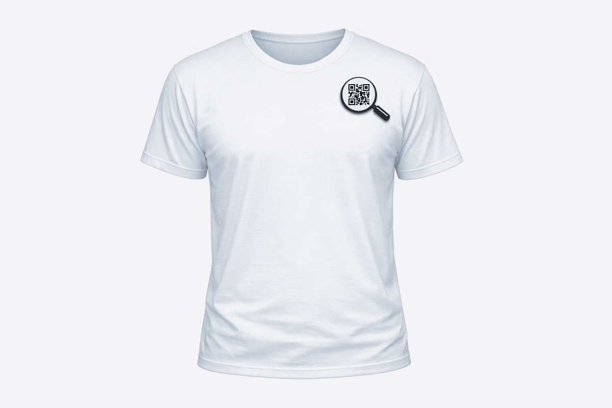 Das ständige Schleppen von Papier-Visitenkarten  war aus den 90ern. Heute trägt man seine Kontaktdaten smart und stilvoll: Ein dezentes QR-Code-Logo unten rechts auf dem Shirt führt direkt zur digitalen Visitenkarte. Modern, praktisch und ganz ohne Papierkram.